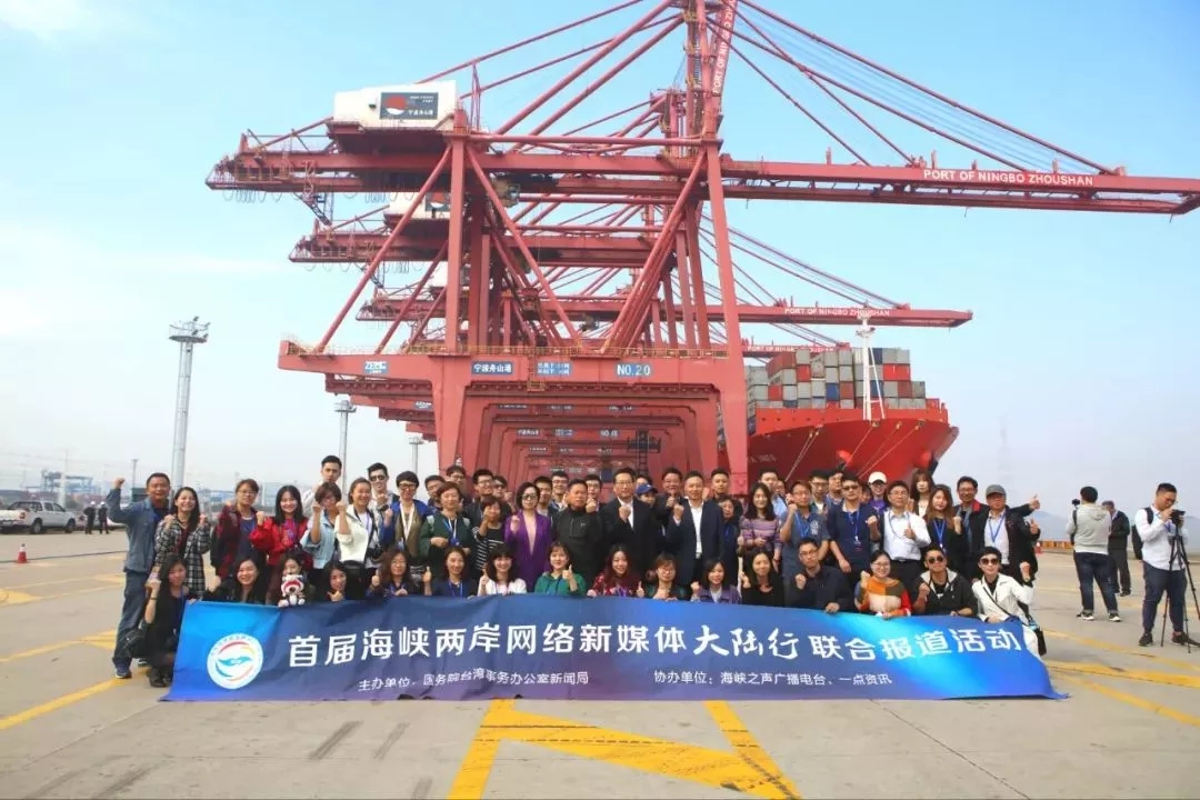 10月30日上午,来自海峡两岸50家网络新媒体近100名记者组成的联合报道团来到宁波舟山港穿山港区进行采访,旨在从经济、科技、文化、民生等多角度立体报道国家改革开放40年发展成就,讲述两岸同胞在改革开放大潮中砥砺前行的故事,展示两岸同胞融合发展的硕果和美好前景。